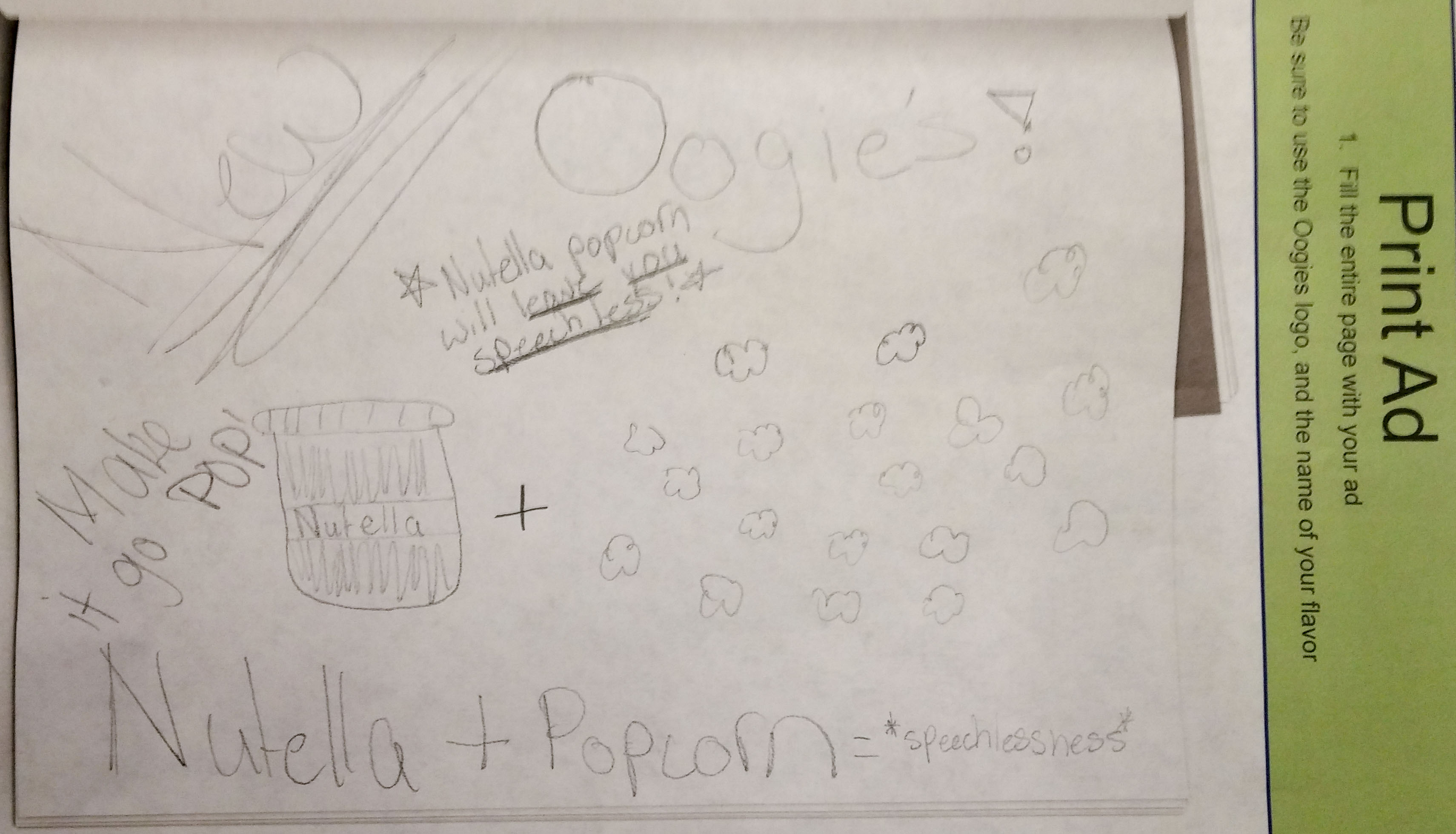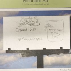 Each group was provided with a blank billboard, Internet popup ad, and TV Commercial storyboard to design ads for their chosen flavor. Here are some of the concepts they created: