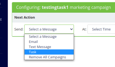 5. Then you can select a task template, who to task, time to schedule. You can create as many sequence as you'd like